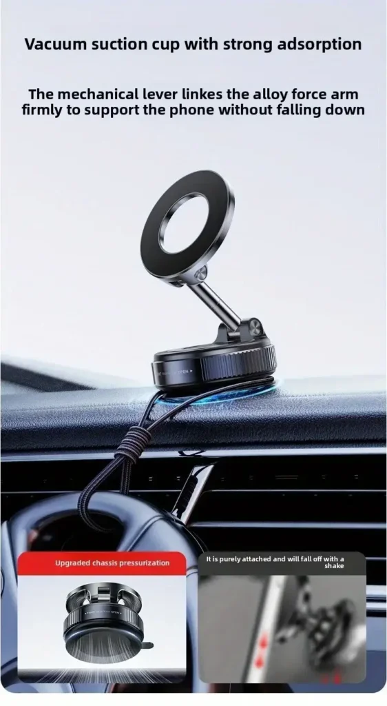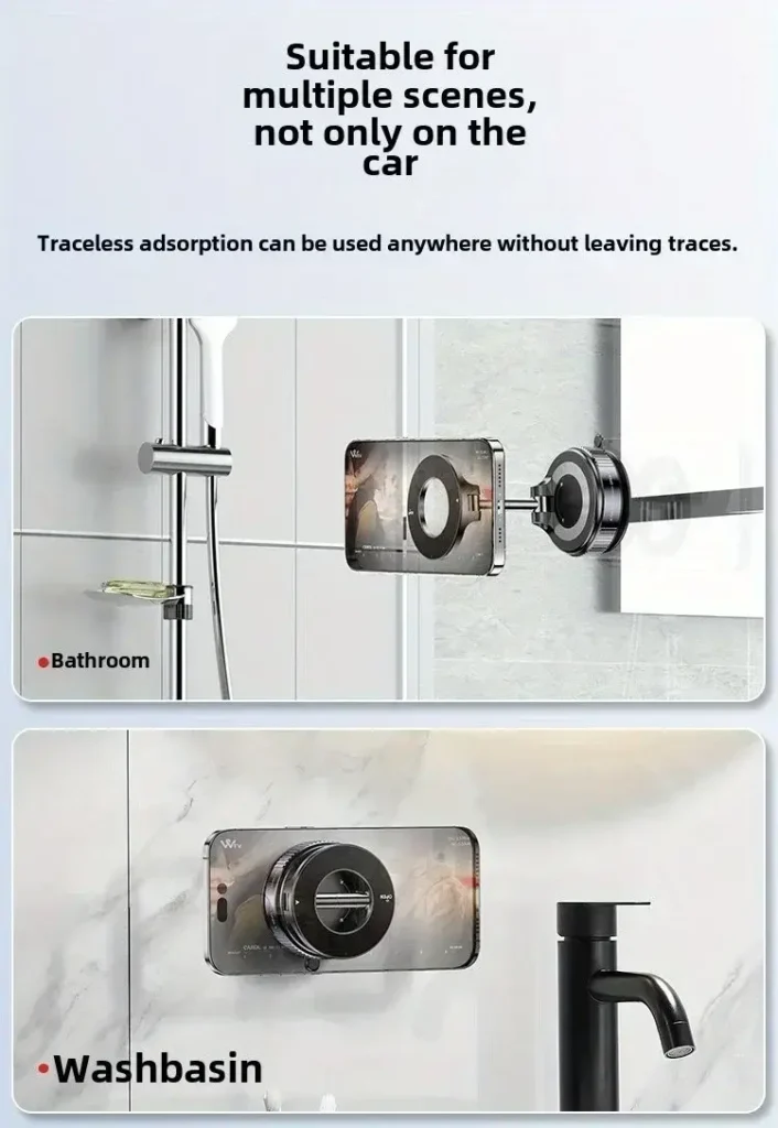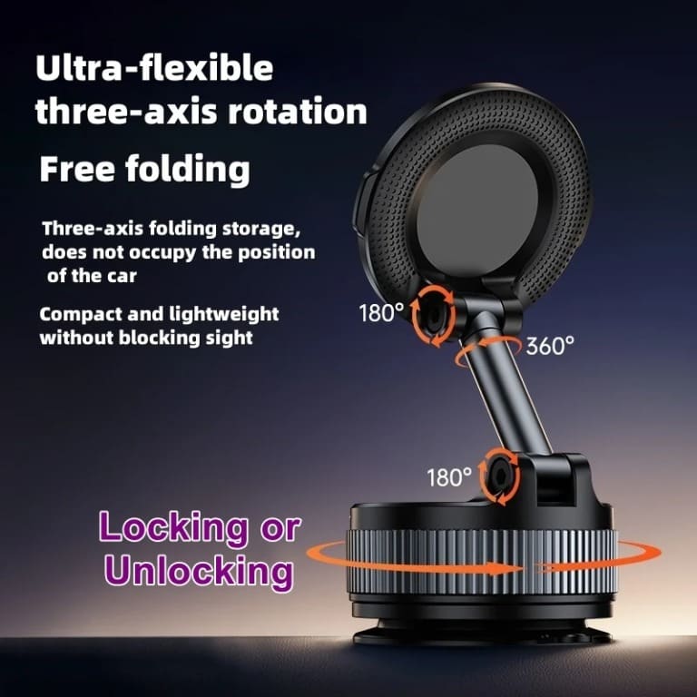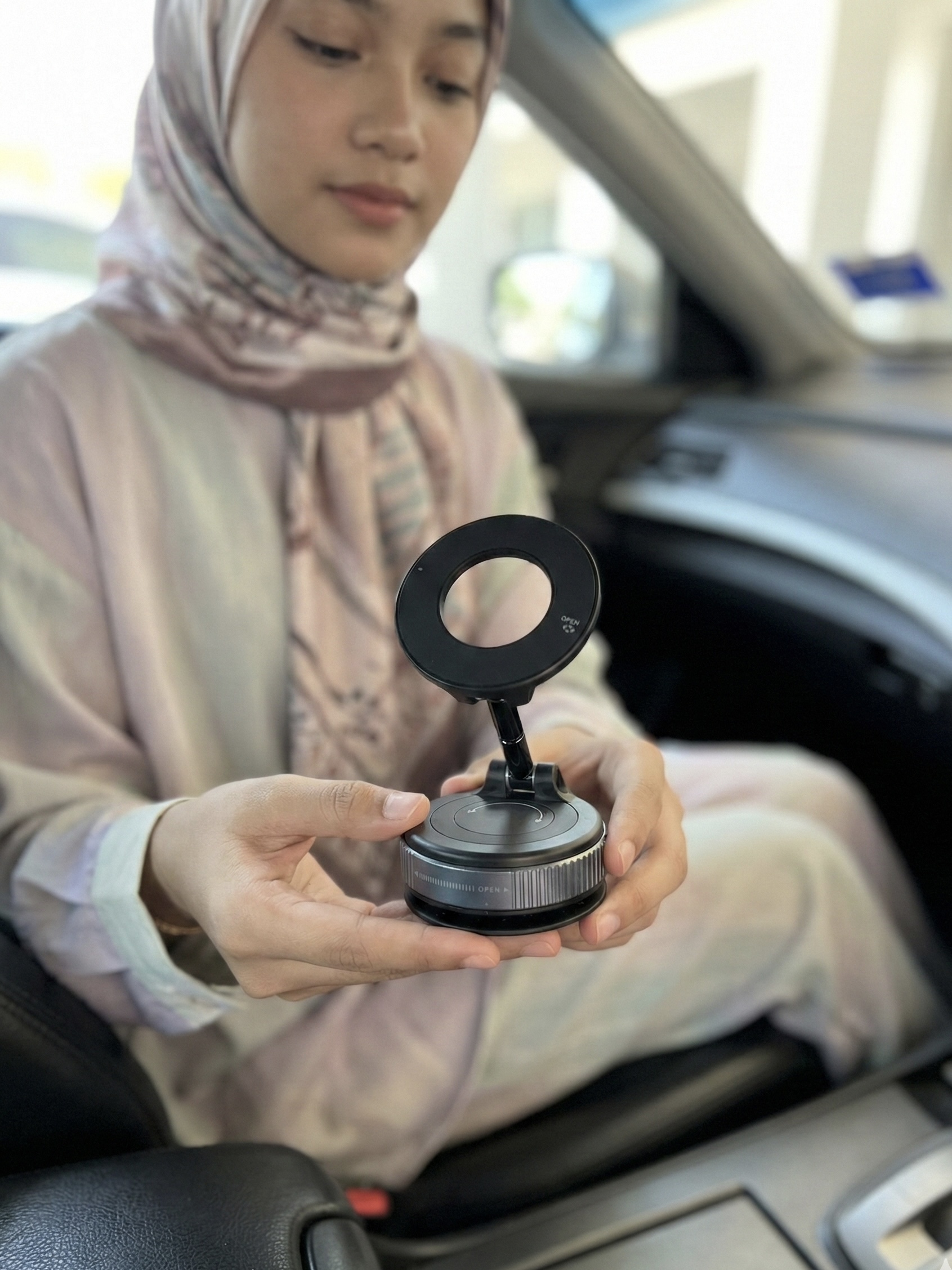MaxGrip Phone Holder ialah pemegang telefon magnetik dengan tapak vakum kuat yang boleh dipasang pada cermin atau permukaan licin. Ia ringan, mudah dipasang dan boleh diputar 360 darjah untuk sesuaikan sudut pandangan. Sesuai digunakan semasa memandu untuk navigasi atau di meja kerja, dengan magnet yang kuat supaya telefon kekal stabil walaupun jalan bergelombang.